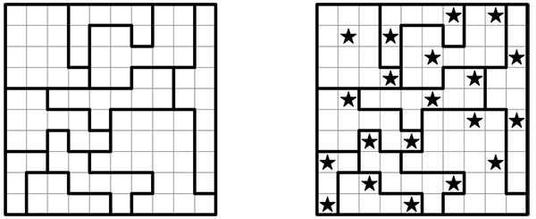 If you have an iPhone or iPad, you might like this app Star Battle Go which is chock-full of my puzzles. The interactive puzzles I have here on the site are free, but this app is great too (especially if you don't have a reliable internet connection), and your in-app purchases help support this website. You'll find Star Battle Go at the Apple App Store.